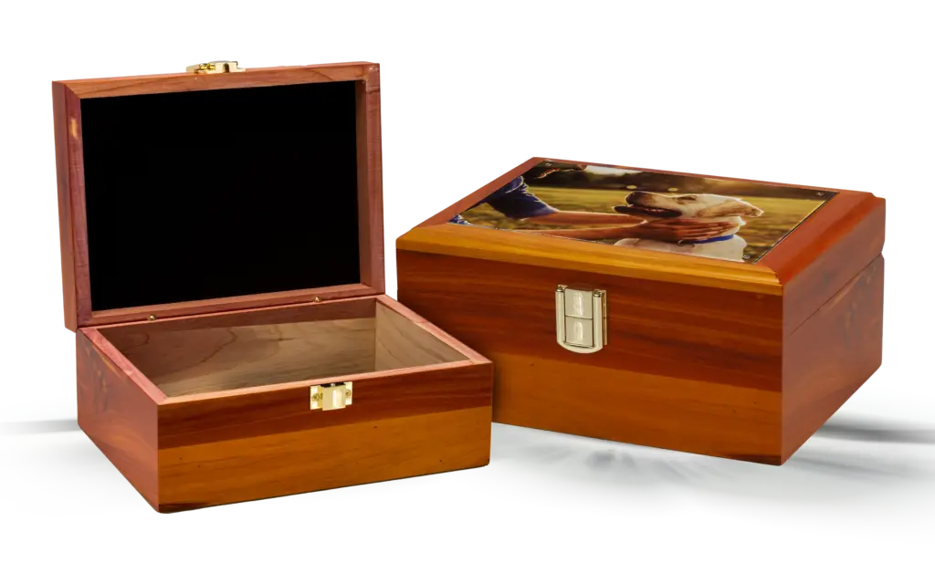 Our collection of wood urns embodies craftsmanship and artistry, each piece uniquely designed to capture the essence of your loved one’s spirit. Whether you prefer a modern touch with our Soulinq urn, a heartfelt tribute with the integrated photo frame in our Photo Urn, or a symbol of eternal companionship with our Companion Urn, our wood urns offer a dignified and timeless memorial. For a natural and aromatic option, explore our Aromatic Cedar Memory Chest Urn and Aromatic Cedar Chest Urn, crafted from high-quality cedar wood.