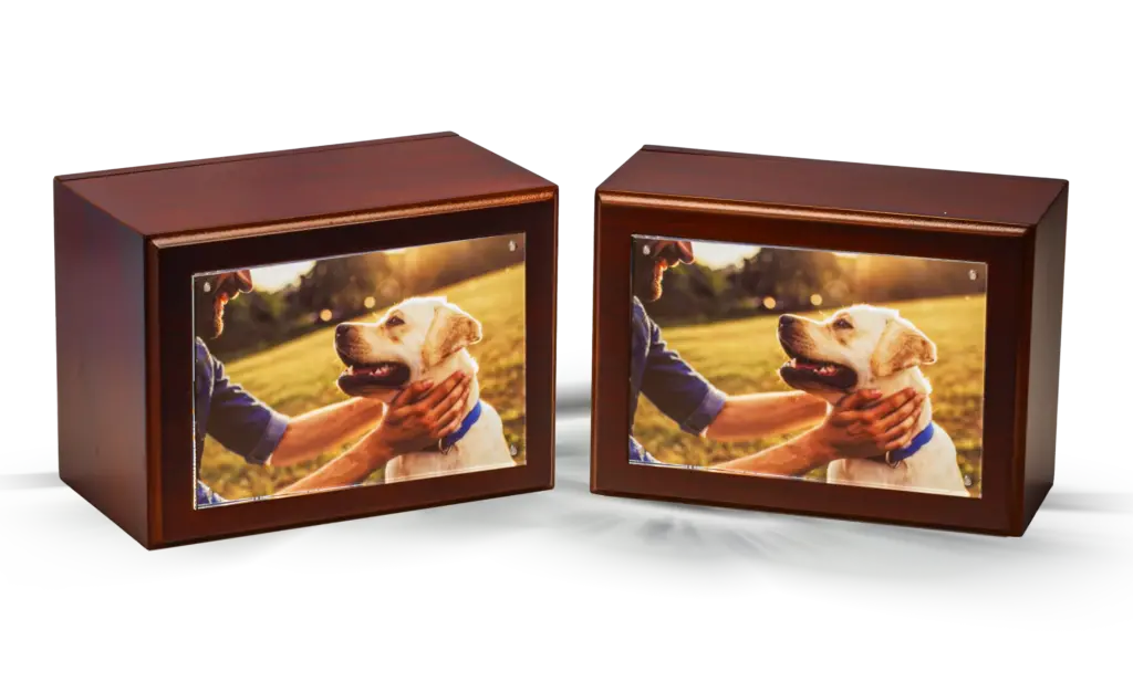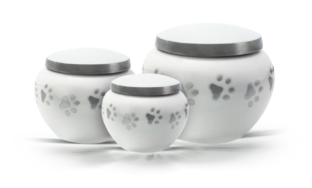 Paw Print Pet Urns: Exquisite brass urns hand-forged and adorned with delicate paw prints, available in multiple sizes and captivating colors to honor your cherished companion.
